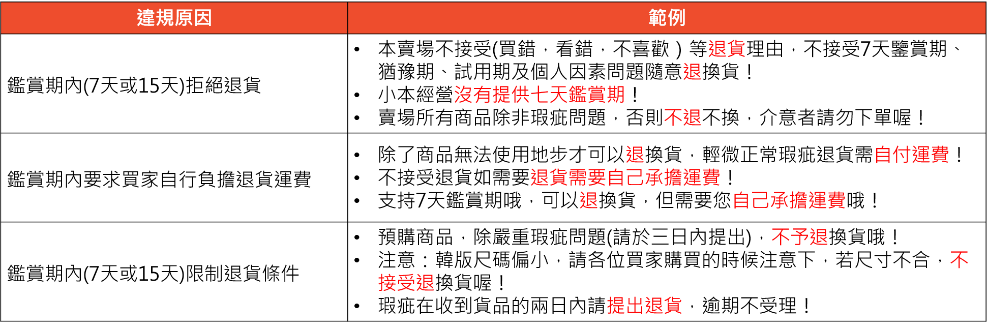 ● 商品描述、賣場介紹及聊聊內提及不提供退貨、若退貨需自付運費的錯誤資訊